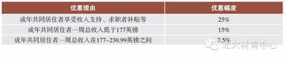 英国的房地产税——市政税优惠也与个人的收入能力密切相关,包括低收入群体税收扣减、成年共同居住者优惠、残疾人减免及空置房豁免等。低收入群体市政税扣减的适用人群包括资产(存款和投资)少于16000英镑的个人以及享受补助优惠的个人。市政税扣减的具体比例需要纳税人申报后由地方政府确定,大多数申请通过者可以获得100%的税收扣减。对于成年共同居住者优惠,则不受个人资产的限制,其核定的标准为共同居住者的具体条件(详见表2)。对于同时符合市政税优惠和成年共同居住者优惠的纳税人,将会执行优惠幅度最大的政策。上述两种税收优惠扣减将由政府计算并在税单中列出扣减的比例和数额。
