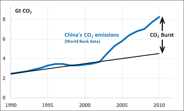 图1 1990年至2010年全球(上)与中国(下)二氧化碳排放量