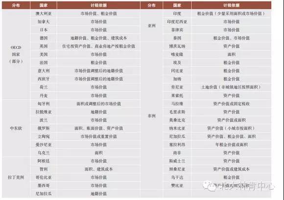 我们根据相关资料,总结了全球部分国家房地产税采用的计税依据,详见下表1。