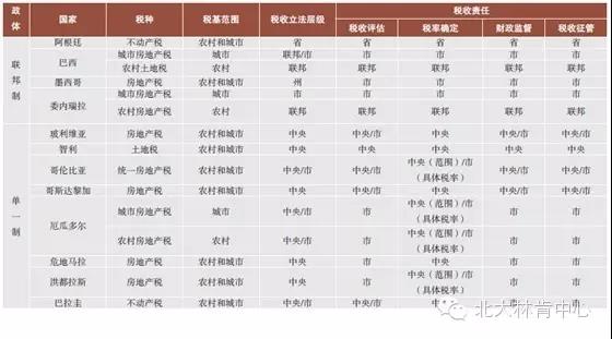 拉美部分国家房地产税管理权划分表