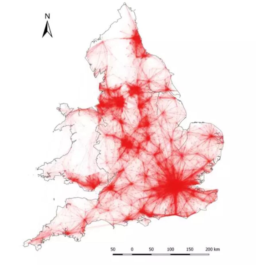 关于北方工业中心的空间概念,目前还是一个有争议的问题。从2011年的普查结果可以看到,行政决策区域和功能区域之间存在不协调,这体现在对拥堵收费的投票和HS2的站点分布上。下图是把60公里交通距离的一些城市联结在一起,包括利物浦、曼彻斯特,诺丁汉等,可以看出城市群在空间的分布状况。