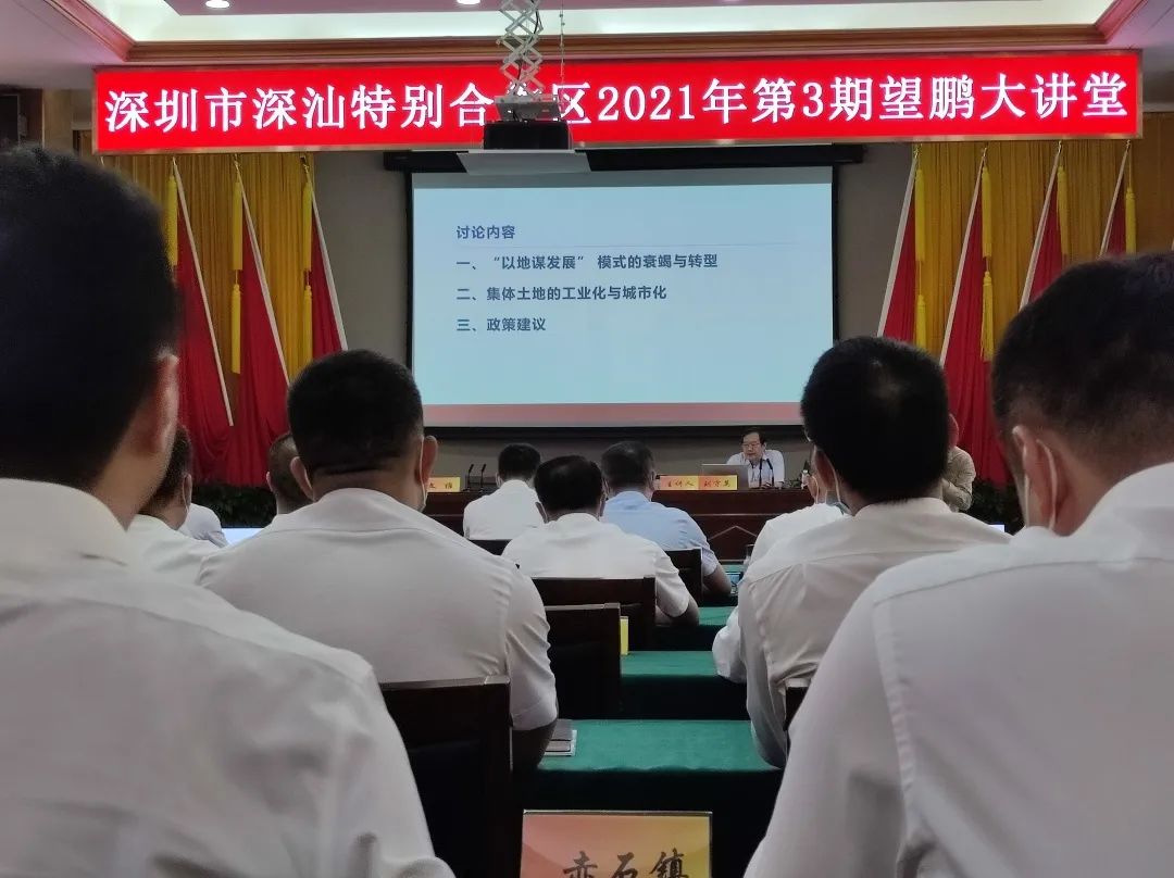 27日上午,在深汕特别合作区管委会组织的“望鹏大讲堂”上,中国人民大学经济学院党委书记、院长刘守英教授做了题为《新型城市化和土地制度改革》的讲座。北大-林肯中心主任刘志作为嘉宾发言。深汕特别合作区管委会党工委书记王延奎、主任吴曲波、副主任文维、副书记谢海生、党工委常委邓凌参加讲座。文维副主任主持了本次大讲堂,在点评中表示,两名专家分享了多年的研究成果,为深汕合作区的土地制度改革提供了政策建议,深汕合作区将按照建设田园都市的目标,不断深化土地制度改革,在发挥好土地价值的同时,与全区人民共享改革发展红利,实现城乡融合发展。本次大讲堂的参加者除了工作坊成员,还有深汕特别合作区管委会各部门的主要负责人。