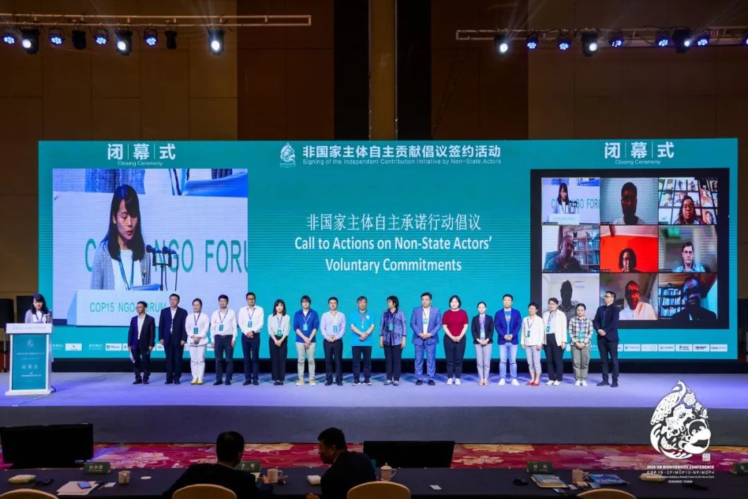 本次NGO平行论坛的闭幕仪式由GEI、桃花源生态保护基金会、中华环保基金会携手中华环保联合会、北京市企业家环保基金会、克莱恩斯欧洲环保协会、中国环境资助者网络共同承办。闭幕式上,来自不同国家和地区的环境公益组织代表、青年群体代表、妇女群体代表、地方社区代表和媒体代表近300人,共同参加了非国家主体自主贡献倡议签约仪式。