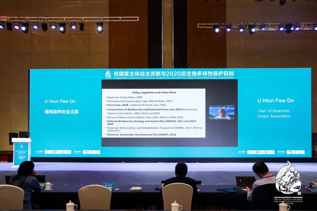 随后,缅甸森林协会的U Htun Paw Oo先生讲述了来自缅甸的社区保护故事。在过去的20年间,缅甸的森林面积大幅减少,毁林的主要原因是对土地的过度开发、非法开采、农业等。缅甸政府方面一直很支持生物多样性的保护工作,出台了国家的生物多样性保护战略计划、生物多样性和保护区法律等等。2020年,缅甸实现了8%的国土面积受到保护,包括原住民保护地和社区保护地。缅甸森林协会的主要目标,就是能够帮助缅甸实现生物多样性保护的计划。