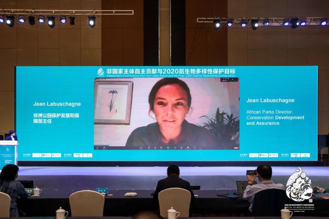 Jean Labuschagne女士作为非洲公园的代表,讲述了社会资本参与非洲国家公园管理案例。非洲公园成立于2000年,目标是应对非洲保护地衰退问题,也最先提出了公共部门和私营部门合作的模式。非洲国家目前在管理11个非洲国家的19个公园,目前有3500名正式员工,其中96%的员工来自当地国家。非洲国家作为非洲领先的生物多样性保护机构,希望可以将30%的非洲独特景观和野生动物纳入保护范围,目标在2030年管理非洲的30个国家公园,土地面积3000万公顷。