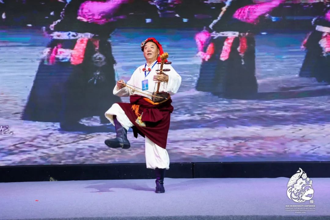 来自青海省玉树藏族自治州的牧民索才,为与会嘉宾奉献了精彩的国家非物质文化遗产——“卓干玛”暖场舞蹈表演。轻歌曼舞中,在场嘉宾共同为自然与人类的共同繁荣而祝福。