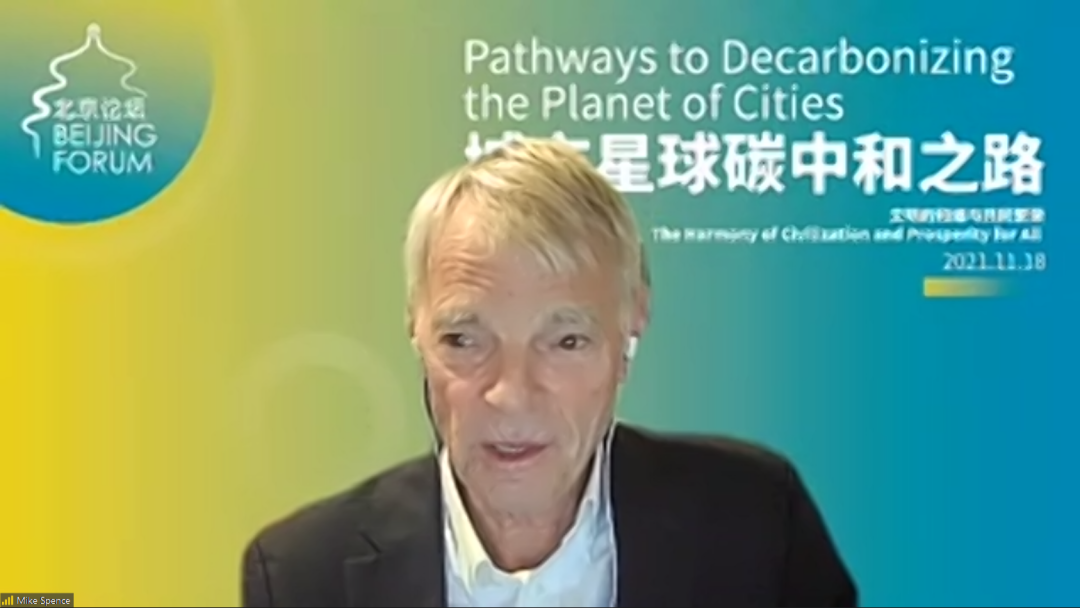 2021年11月18日,北京论坛(2021)“城市星球碳中和之路”分论坛在线成功举办。本次分论坛由北京论坛、北京大学城市与环境学院、北京大学-林肯研究院城市发展与土地政策中心和北京大学能源研究院联合举办。分论坛邀请了2001年诺贝尔经济学奖获得者A. Michael Spence教授等多位国内外知名专家学者参会。通过Zoom连线和B站全程中英文实时转播,中文直播间6000多位观众与英文直播间1800多位观众在线共享学术盛宴。分论坛持续一天时间。