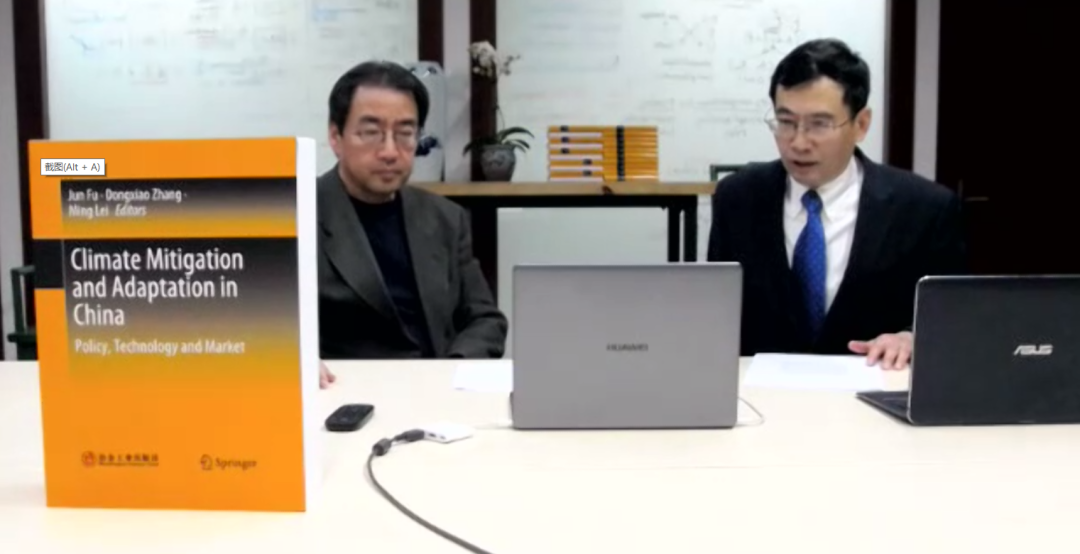 新书发布环节推出了Climate Mitigation and Adaptation in China: Policy, Technology and Market (《中国气候缓解与适应:政策、技术和市场》)一书。本书由北京大学教授傅军、张东晓、雷明共同主编。傅军教授介绍本书从政策、技术和市场角度汇集了学界和当前政策制定界的观点,并借鉴了国际经验,结合中国实际提出本土化工程技术实践和政策建议。张东晓教授和雷明教授分别介绍了本书的研究内容。刘志主任介绍了国际知名学者对本书的推介评论,高度评价了本书对中国减碳政策的贡献。