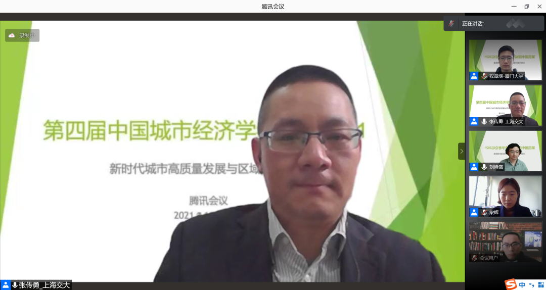 分会场七的主题为“城市人口与劳动力”。张传勇教授主持了上午场,他汇报了基于中国劳动力动态调查数据的劳动力流动、城市人口规模控制与职业多样性实证研究。刘诗濛分享了人力资本如何促进“智本城市”发展。程章继、梁辉都针对人口流动和人才引进主题介绍了自己的研究内容。
