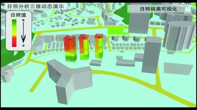 在这张截图中,GAMA模拟了两个不同的公寓的视野范围(一前一后,由地址识别) ;绿色表示公寓可见的区域,红色表示被遮挡的区域。